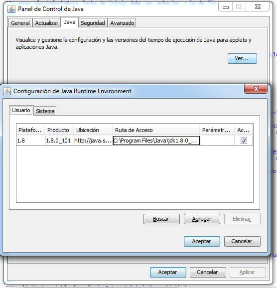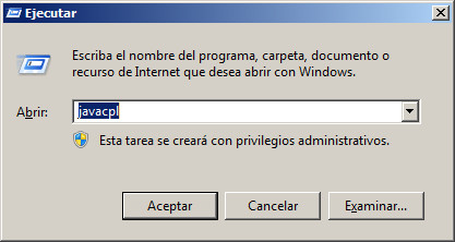 - Verifiquelo usted en su sistema operativo entrando en Inicio / Panel de control / Java en Windows. O bien Inicio / Ejecutar y escriba javacpl.exe.